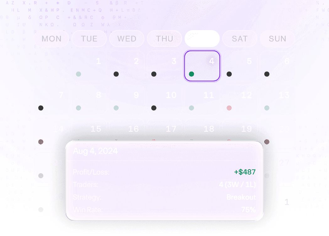intuitive calendar view, showcasing your trading patterns, volume, and